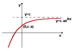 cresce rapidamente no começo, nivela-se e então aproxima-se de sua assíntota y=c.