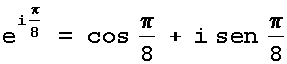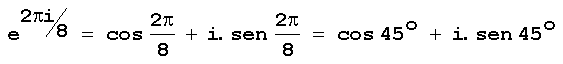 Exercício: Construa no sistema cartesiano os 8 números complexos e ligue todas as raízes consecutivas para obter um octógono regular rodado de 22,5 graus em