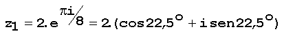 primeira raiz é pi/8, então z1 pode ser escrita na forma polar: